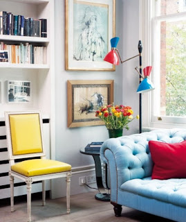 If you like many different accessories for different colors and do not know how to combine them - first, use white for your walls. A good example is this beautiful apartment in London. The walls are actually white, but all the furniture and accessories colorful leaves a beautiful impression of light. Yellow chairs, sofas blue, red pillows and unreal light makes a great fusion! Here you can see the chandeliers and classic pop art images in one room, furniture and futuristic details, and a traditional fireplace in the living room, minimalist blue and red lights with a classic sofa. This mix of colors, styles, brands and the work of the designer are crazy, but looks so good!